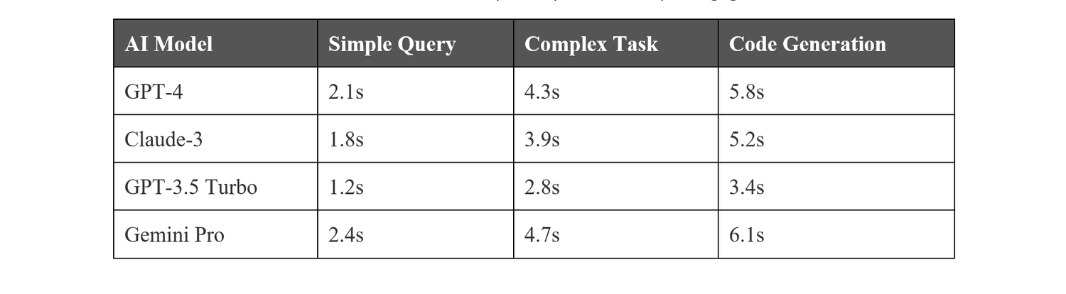 When testing the CPU performance of Universal AI App across different models, response times differed greatly depending on the complexity and dimensions of each AI system. GPT-4 provided over all responses within 2-4 seconds for nominal queries (with a negligible performance overhead) and Claude differed only to the better, performing with 1.5 – 3 seconds on the average. The lighter models like GPT-3. 5 Turbo demonstrated excellent 1-2 second speeds, perfect for rapid engagements.